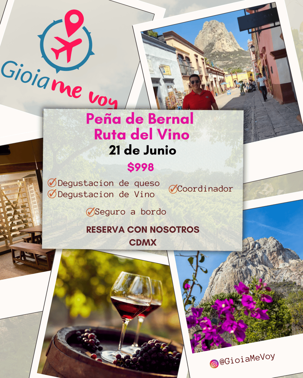 Vino, quesos y una vista que pocos pueden presumir. Recorre viñedos selectos y conquista la majestuosa Peña de Bernal.