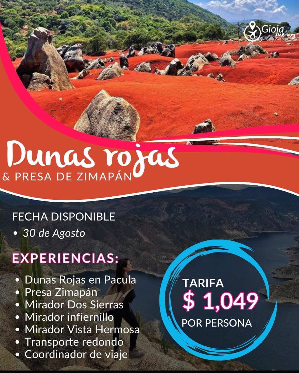 📍 Un pedacito de Marte en la Tierra. Descubre uno de los paisajes más impresionantes y poco explorados de México: las Dunas Rojas en Pacula, Hidalgo. Completa esta aventura con vistas imponentes desde los mejores miradores naturales de la Presa Zimapán.